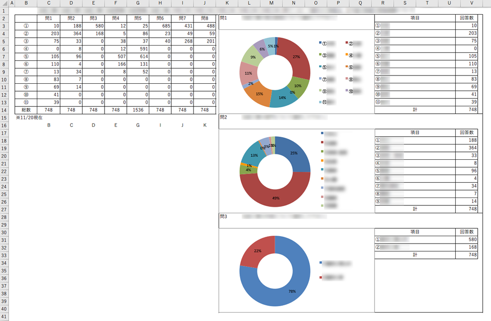 出力用のエクセルファイル(テンプレート)はグラフや集計データを自由にカスタマイズでき、